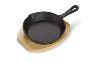ECHTWERK Żeliwna patelnia do serwowania, Patelnia do serwowania, Mini patelnia z deską do serwowania, Już upieczona, Nadaje się do piekarników, grilla i indukcji, Idealna do gotowania i serwowania