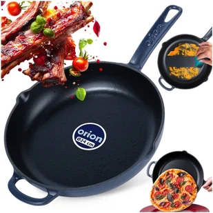 Solidna patelnia żeliwna LITINA ORION 113217 — emaliowana, świetna na kuchenkę indukcyjną. Średnica 24 cm, trwała konstrukcja i doskonałe rozprowadzanie ciepła gwarantują równomierne smażenie i długą żywotność. Waga brutto 2775 g — pewny wybór do codziennego gotowania.