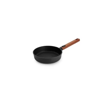 Woll Eco Logic QXR żeliwna patelnia płaska, indukcyjna, Ø 20 cm, wysokość 5 cm, ze zdejmowanym, trwałym drewnianym trzonkiem – nadaje się do wszystkich rodzajów kuchenek, nie zawiera PFAS, powłoka