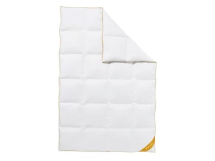 Balette deLuxe Kołdra kasetowa z puchu gęsiego Gold Edition, ciepła Ciesz się przytulnym, ciepłym komfortem snu w miękkim puchu gęsim (90%). Balette de Luxe "Gold Edition" jest wypełniona wysokiej jakości, nowym, białym, arktycznym puchem gęsim i pierzem (90% puchu / 10% pierza) klasy 1 i pokryta najwyższej jakości batystem puchowym wykonanym w 100% z bawełny. Puch ma wysoką moc wypełnienia i doskonałą pojemność cieplną oraz zapewnia optymalne środowisko snu. Są idealną "klimatyzacją" dla łóżka o każdej porze roku. Kołdra puchowa Balette de Luxe "Gold Edition" z atrakcyjnym pikowaniem kasetowym idealnie nadaje się jako kołdra zimowa o klasie ciepła "warm".