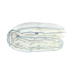 Dodatkowo gęsta struktura tkaniny zabezpiecza przed przenikaniem puchu na zewnątrz, co potwierdzają przeprowadzone badania według norm DIN EN 121132-1. Evolon® zapewnia również doskonałe zarządzanie wilgocią. Zarówno woda, jak i pot są wchłaniane przez materiał, który następnie bardzo szybko schnie, odprowadzając wilgoć na zewnątrz. Evolon® otrzymał niezależną pieczęć jakości Europejskiej Fundacji Badań nad Alergią (ECARF). Wypełnieniem kołdry jest najwyższej klasy biały puch gęsi (90%) i delikatne piórka puchowe (10%).