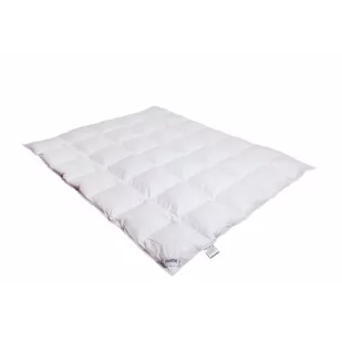 Kołdra posiada wypełnienie z puchu gęsiego 100%. Jest to produkt polski, spełniający wygórowane standardy europejskiej normy jakości PN-EN 12934, prany i starannie wyselekcjonowany spośród najbardziej delikatnych piór. Wysoką jakość odzwierciedlają różne certyfikaty i parametry - najwyższa czystość puchu 1000 mm i wysoki poziom sprężystości 800 cuin. Ponadto, dzięki kasetowej konstrukcji, kołdra jest bardzo miękka i odpowiednio sprężysta.