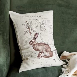 W okresie wielkanocnym przytulne dodatki tekstylne stają się romantycznym środkiem stylistycznym, który wnosi do wnętrza wyjątkowy urok. Ta dekoracyjna poduszka zachwyci wszystkich miłośników zajączków – urzeka nostalgicznym nadrukiem, który przywodzi na myśl ryciny w starych podręcznikach. Wszystkie kluczowe elementy zostały tu przedstawione za pomocą słów i obrazów – od anatomii po ulubione przysmaki tych uroczych zwierzątek. Realistyczny nadruk idzie w parze z doskonałą naturalną jakością: lniana tkanina o charakterystycznej strukturze jest przyjemna w dotyku i wytrzymała w użytkowaniu.