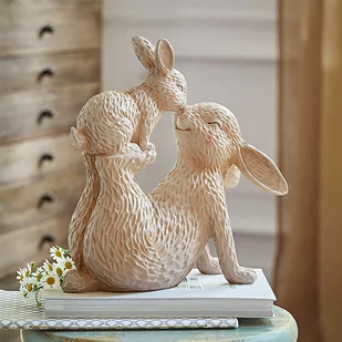 Absolutnie uroczy i słodki. Ręcznie malowana żywica polimerowa. Starannie wykonana dekoracja, idealna na Wielkanoc. Być może to najsłodszy pocałunek w nos w historii – ten duet to radość sama w sobie. Nie sposób się nie uśmiechnąć na widok tych uroczych zajączków! Starannie wykonane figurki to wspaniała ozdoba wielkanocna, którą tak naprawdę można cieszyć się przez cały rok.