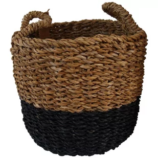 kosz pleciony Sophian do przechowywania rozmiar L okrągły kształt wykonany z trawy morskiej wyposażony w uchwyty kolor: czarny, beżowy materiał: trawa morska wymiary (wysokość x średnica): 40x35 cm
