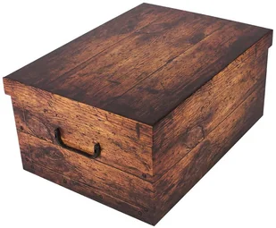 Ozdobne pudełko kartonowe z pokrywą do przechowywania. Praktyczne, funkcjonalne, zaprojektowane z dbałością o najdrobniejsze szczegóły. Wykonane z wysokiej jakości, wytrzymałego, kaszerowanego kartonu z połyskiem. Ścianki boczne spięte plastikowymi nitami. Solidne uchwyty z PCV ułatwiają przenoszenie.