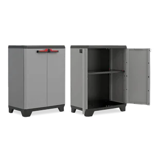 Szafa Stilo to doskonałe rozwiązanie jeśli chcesz utrzymać porządek w garażu warsztacie w piwnicy czy na strychu. Produkt posiada jedną półkę na której z łatwością zmieścisz skrzynki z narzędziami oraz inne niezbędne przedmioty. Szafa jest zamykana dzięki czemu zawartość jest osłonięta przed pyłem kurzem a także innymi zanieczyszczeniami.