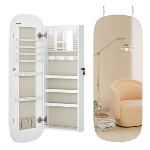 Szafka na biżuterię z lustrem oświetleniem LED zamykana na klucz