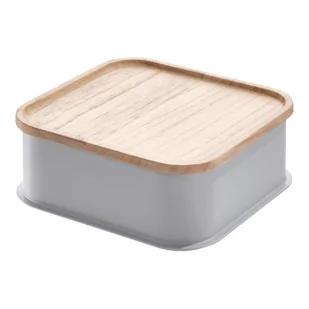Pojemnik z pokrywką, 21,3 x 21,3 x 7,6 cm, drewno paulownia, szary - iDesign | Eco StorageiDesign łączy zrównoważony rozwój z przechowywaniem i organizacją dzięki pudełku z pokrywką Eco Storage. Pokrywa z twardego drewna paulownia została połączona z plastikowym pojemnikiem pochodzącym z recyklingu, aby zapewnić ekologiczną alternatywę dla utrzymania porządku w łazience, sypialni, kuchni, spiżarni lub biurze. Pokrywa ma podniesioną krawędź, która zapewnia dodatkową przestrzeń do przechowywania. Pokrywy można również używać do układania kilku pudełek w stos. Połącz pudełka o różnych rozmiarach z tej samej serii, aby stworzyć idealny zestaw do przechowywania.