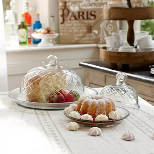 Szklany klosz ze szlifem diamentowym, talerz z perłowym rantem. Dwa różne rozmiary. Piękny i praktyczny – sprawdzi się zarówno w kuchni, jak i do serwowania posiłków! Sery, ciastka i świeże owoce będą apetycznie podane i chronione przed owadami.