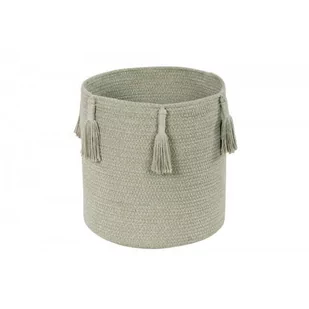 Nigdy nie należy ciągnąć nitek. Kosz powstał przy połączeniu dwóch odcieni kolorów, aby uzyskać odzwierciedlenie kolorów natury, które charakteryzują całą kolekcję Cotton Woods. Okrągły kosz Woody jest wykonany z bawełnianych sznurków w kolorze oliwkowym i ciemnej oliwki. Wykończony ręcznie robionymi frędzlami które zostały przymocowane do krawędzi. Kosz pomieści wszystkie zabawki dziecka, a także będzie piękną dekoracją w każdym wnętrzu.