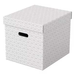 Home Pudełko do przechowywania w kształcie sześcianu, zestaw 3- Nowoczesne pudełka do przechowywania w kształcie sześcianu- wykonane z wytrzymałej tektury falistej, w 100% pochodzącej z recyklingu i w 100% nadającej się do recyklingu- ze zdejmowaną pokrywą- z uchwytami do przenoszenia, dzięki czemu w razie potrzeby pudełko można łatwo przenosić z pokoju do pokoju- Konstrukcja z podwójnymi ściankami bocznymi i podstawą- powierzchnia do wycierania ma dwukolorowy, geometryczny wzór- Dostarczane w płaskim opakowaniu- opakowanie nie zawiera plastikuPrzykłady zastosowań- idealne do przechowywania dokumentów, folderów, zabawek, książek i innych większych przedmiotów- idealne dopasowanie do półek IKEA Kallax Szybka przestrzeń do przechowywania w biurze i gospodarstwie domowymPojemniki do przechowywania Esselte Home to 3 pojemne pudełka w tym samym rozmiarze do przechowywania dokumentów, książek i zabawek w uporządkowany i łatwy do znalezienia sposób. Łatwo jest dodać trwałe i stylowe organizery do półek i szafek. Nowoczesny geometryczny designStylowe pudełka z tektury falistej ze zdejmowanymi pokrywami mogą pomieścić wszystkie małe i duże przedmioty. Przedmioty mogą być chronione przed kurzem i przechowywane w celu zaoszczędzenia miejsca. Dzięki temu w pomieszczeniach zawsze panuje porządek, a przestrzeń zapewnia swobodę produktywnej i relaksującej pracy.