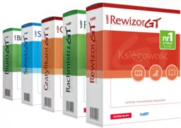 Biuro rachunkowo-płacowe plus - Rewizor, Rachmistrz, Gratyfikant, Biuro, Subiekt licencja elektroniczna Biuro rachunkowo-płacowe plus, wieczysta licencja na jeden podmiot (biuro rachunkowe). Zestaw Biuro rachunkowo-płacowe plus składa się z 5 programów: Rachmistrz GT (księga przychodów i rozchodów i system naliczania podatku zryczałtowanego) - licencja podstawowa do 30 podmiotów, licencja na nieograniczoną liczbę stanowisk Rewizor GT (system finansowo-księgowy) - licencja podstawowa do 5 podmiotów, licencja na nieograniczoną liczbę stanowisk Gratyfikant GT (kadry i płace) - licencja podstawowa do 5 podmiotów i nieograniczoną liczbę pracowników Biuro GT (system wspomagania pracy biura rachunkowego) - licencja podstawowa na podmiot biura rachunkowego Subiekt GT (system wspomagania sprzedaży) - licencja podstawowa na podmiot biura rachunkowego, licencja na 3 stanowiska Po zakupie otrzymają Państwo klucz wraz z linkiem do pobrania programu ze strony producenta. GRATIS: 3 miesięczny abonament na ulepszenia oraz 3 miesięczna opieka telekonsultanta Rewizor GT System do prowadzenia pełnej księgowości, przeznaczony dla małych i średnich firm oraz biur rachunkowych.