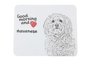Hawańczyk, Havanese - podkładka pod myszkę z nadrukiem, personalizowana podkładka z psem, wyjątkowy gadżet dla pracownika biurowego marki Art-Dog Przedstawiamy wyjątkową podkładkę pod myszkę z nadrukiem przedstawiającym psy, koty oraz konie. Miękka podkładka poprawia komfort pracy przy komputerze. Jej poliestrowy wierzch jest gładki, zapewnia łagodny i płynny ślizg myszy, natomiast spód ze spienionej gumy zapobiega przesuwaniu się podkładki po blacie biurka. Nasze podkładki można w pełni spersonalizować: możemy zmienić zdjęcie, nazwę rasy, a także cały napis.