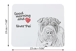 23 x 19 cm Grubość podkładki: 3 mm Materiał: poliester Shar Pei