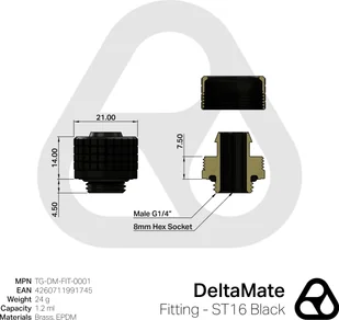 Thermal Grizzly DeltaMate Fitting - ST16, schwarz TG-DM-FIT-0001