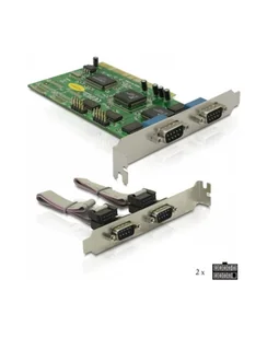 Karta DeLock PCI dodaje cztery zewnętrzne porty szeregowe do komputera. Do karty można podłączyć różne urządzenia, takie jak skanery, modemy, myszy itp. > Podstawowe cechy - Typ produktu: Karta interfejsu > Opis techniczny - 2 x port szeregowy DB9 - 2 x złącza pinowe, ze wspornikiem gniazda na Db9 - Kompatybilny z 16C550 UART - FIFO: 16 bajtów - Prędkość transferu danych do 1 Mbps - Plug & Play - Automatyczne ustawianie IRQ i I/O - Obsługuje PCI IQR Sharing - 32-bitowy standard PCI 2.