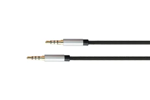 PYTHON Seria Premium Audio AUX 3,5 mm kabel jack 4-biegunowy – 1 m – w pełni metalowa wtyczka ze stopniem 2 mm do etui ochronnych z obu stron – pozłacane złącza – kabel miedziany – splot tekstylny – czarny