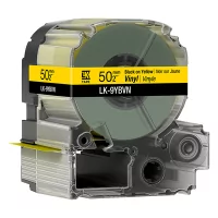 Oryginalna taśma Epson LK-9YBVN czarno-żółta (czarny nadruk na żółtym tle) jest używana w systemach napisów Epson. LK-9YBVN to taśma laminowana o szerokości 50 mm i długości 7 metrów. Taśma ta jest odporna na ciepło, zimno i wodę, co czyni ją bardzo wytrzymałą. Taśmy LK firmy Epson są automatycznie wykrywane przez drukarkę etykiet, co zwiększa produktywność. Dzięki funkcji Automatic Tape Rewind, taśma automatycznie zwija się do urządzenia po odcięciu, minimalizując ilość niewykorzystanej taśmy.