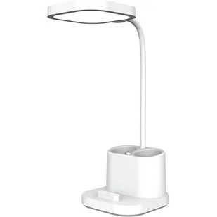 Lampka biurkowa LED PLATINET PEN HOLDER biala 4W (45777) Lampka biurkowa która łączy w sobie funkcje ładowarki do smartfonów, kubka na długopisy i lampki nocnej. Zintegrowana bateria o pojemności 2400mAh daje niezależność od źródła zasilania. Bateria pozwala na pracę urządzenia do 4 godzin. Lampka oferuje także trzy poziomy jasności dając naturalną i neutralną barwę światła, idealną do czytania i nauki. Specyfikacja techniczna Wymiary: