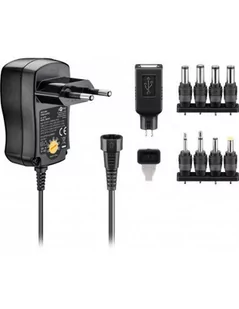 dostarcza stabilizowany prąd stały o natężeniu 0,6 ANapięcie wyjściowe wybierane od 3 V do 12 V za pomocą przełącznika obrotowego8 złączy adaptera i dodatkowe złącze USB do podłączania popularnych urządzeń elektrycznychdo 90% oszczędności energii w trybie czuwaniaidealnie nadaje się do użytku na całym świecie dzięki szerokiemu zakresowi wejściowemu od 100 V do 240 VBezpieczniki chronią przed zwarciem, przeciążeniem i przetężeniem Wejście, zakres napięcia: 100 - 240 (AC) V Oznaczenia : WEEE, dom, prostopadłościan Częstotliwość sieci: 60 Hz Stabilizacja napięcia: tak Wyjście, typ :