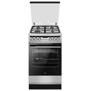 Kuchnia Amica wolnostojąca gazowo-elektryczna, o szerokości 50 cm, pojemności piekarnika 65 l, z rożnem obrotowym, 4 palnikami gazowymi z zabezpieczeniem przeciwwypływowym, w klasie energetycznej A.