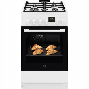 kuchnia gazowa wolnostojąca o szerokości 50 cm, 4 palniki gazowe, 9 ustawień mocy, piekarnik elektryczny o pojemności 54 l, elektroniczny programator, żeliwne ruszty, podwójna szyba, szuflada do przechowywania akcesoriów, automatyczna zapalarka w pokrętle, termoobieg, grill i grzanie konwencjonalne, chromowane drabinki z blokadą, możliwośćzaprogramowaniaczasu włączenia i wyłączenia piekarnika.