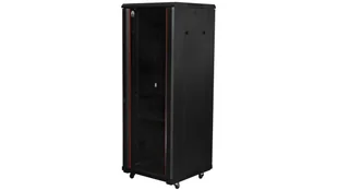 Szafa stojąca RACK 19 27U 600x800mm drzwi szklane czarna NEKU FLR + wyposażenie