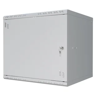 Szafę można łatwo przykręcić za pomocą kołków rozporowych (nie znajdują się w zestawie) dzięki otworom w tylnej części. Szafa umożliwia czteropunktowy montaż do ściany, co zwiększa jej stabilność. Drzwi można zamontować zarówno po prawej, jak i lewej stronie, a dzięki specjalnym zawiasom ze sprężyną ich montaż i demontaż jest niezwykle prosty. Szyny RACK można zamontować na trzech głębokościach, co pozwala na swobodne dopasowanie do urządzeń wewnątrz. W górnej i dolnej części znajdują się miejsca na wentylatory 120x120 mm (rozstaw otworów 105x105 mm), co zapewnia odpowiednie chłodzenie urządzeń. Dodatkowo, wyłamywane przepusty kablowe 50x80 mm (3 sztuki w górnej i 3 sztuki w dolnej części) ułatwiają zarządzanie okablowaniem. Szafa jest wyposażona w perforacje od frontu i po bokach, co jest kluczowe dla odprowadzania ciepła.