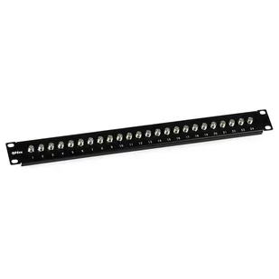 Patch panel 19" 1U 24 porty typu F, czarny stanowi zakończenie okablowanie strukturalnego dla kabli koncentrycznych 75Ω. Umożliwia eleganckie wyprowadzenie okablowania ze stacji czołowej lub wzmacniaczy do gniazd końcowych. Panel montowany jest w szafach RACK 19".