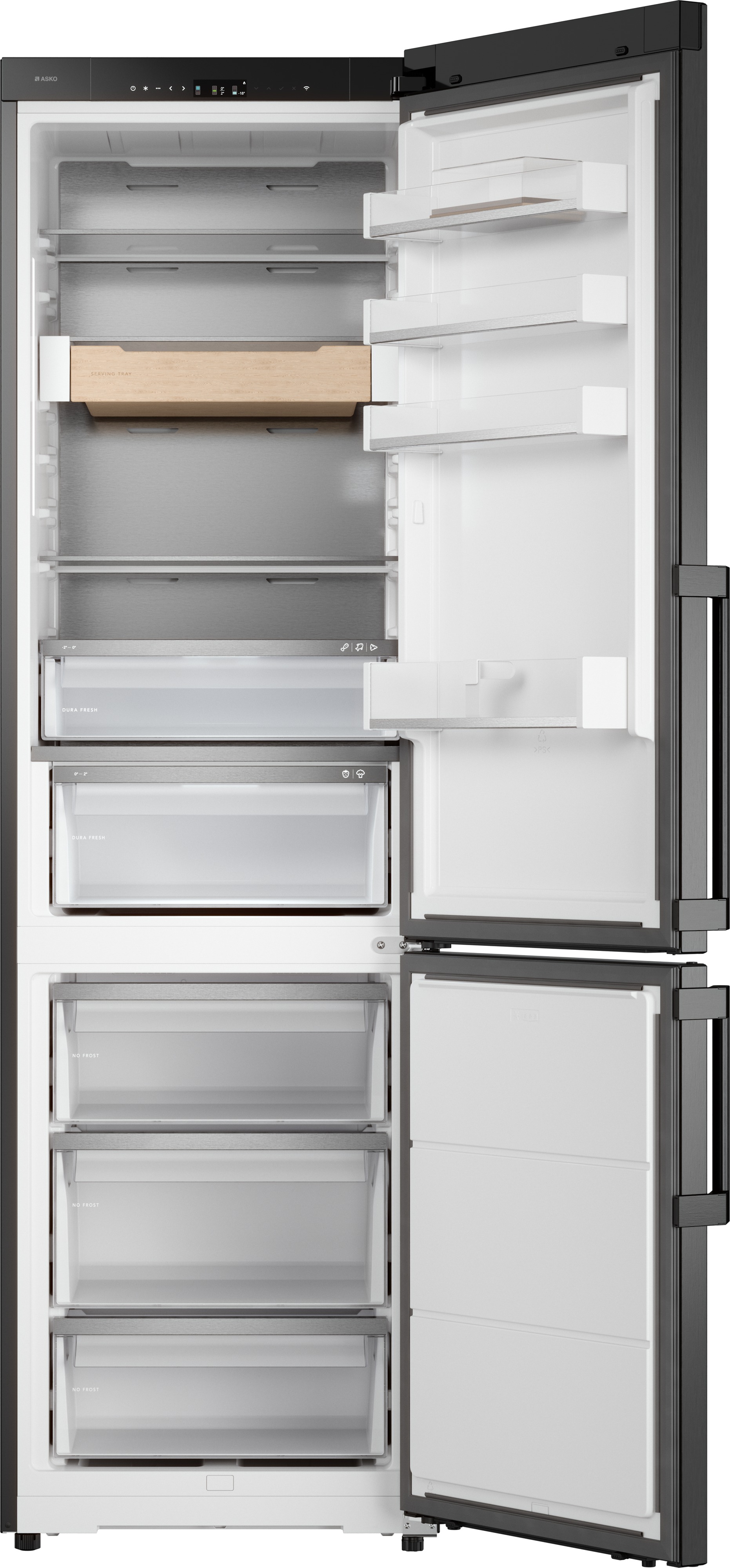 Asko Chłodziarko-zamrażarka 745893 to wolnostojący model BV, charakteryzujący się eleganckim wykończeniem w czarnej stali. Oferuje nowoczesne funkcje, takie jak NoFrost, wyświetlacz TFT oraz system Adaptive Temperature Control, co zapewnia optymalne przechowywanie żywności.
