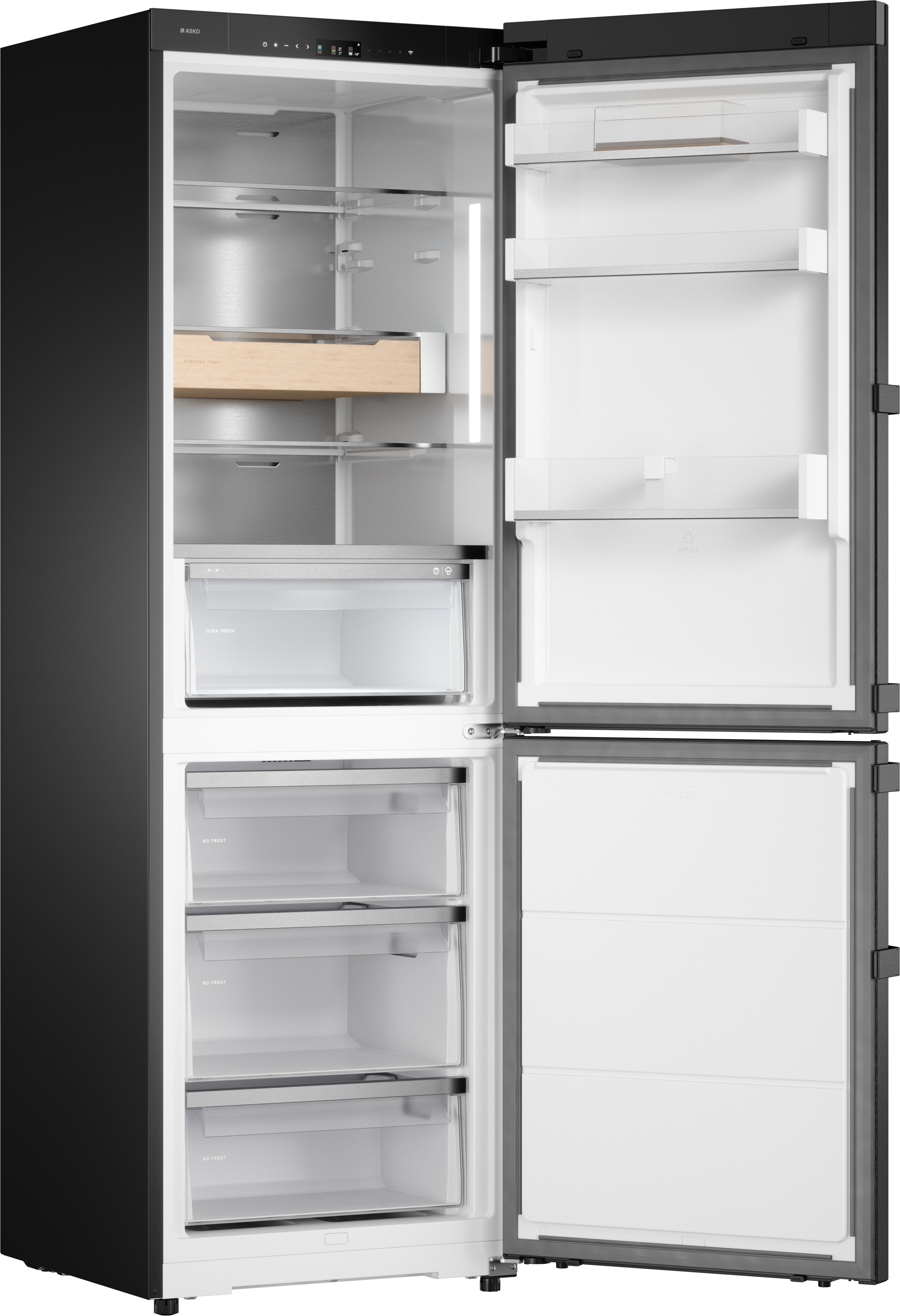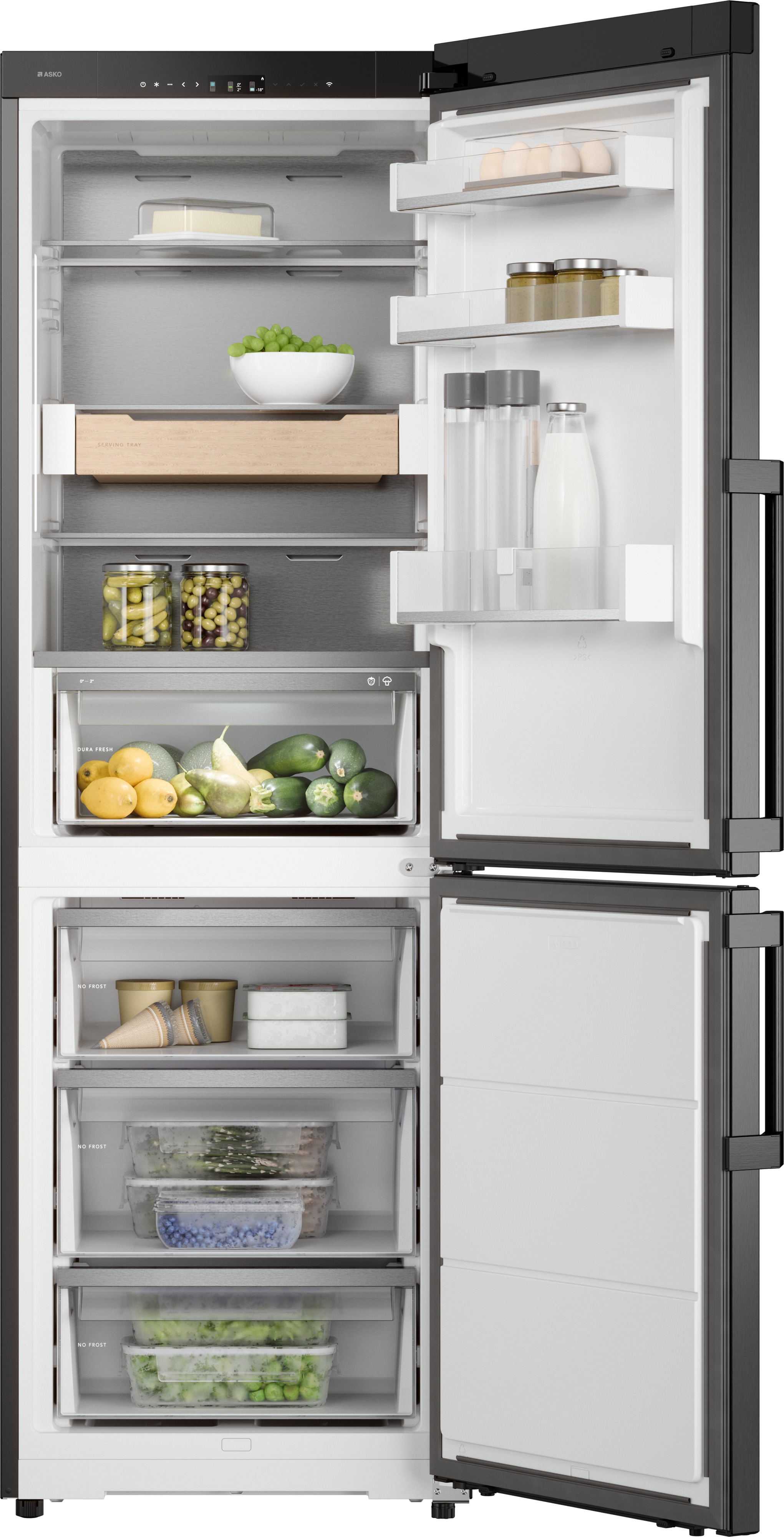 Asko Chłodziarko-zamrażarka 745995 to wolnostojący model KitchenFit, który łączy nowoczesny design z funkcjonalnością. Wykonana z czarnej stali, ma wysokość 185 cm i charakteryzuje się niskim poziomem hałasu wynoszącym 34 dB. Wyposażona w innowacyjne technologie, takie jak NoFrost, MetalCooling oraz Adaptive Temperature Control, zapewnia optymalne warunki przechowywania żywności.