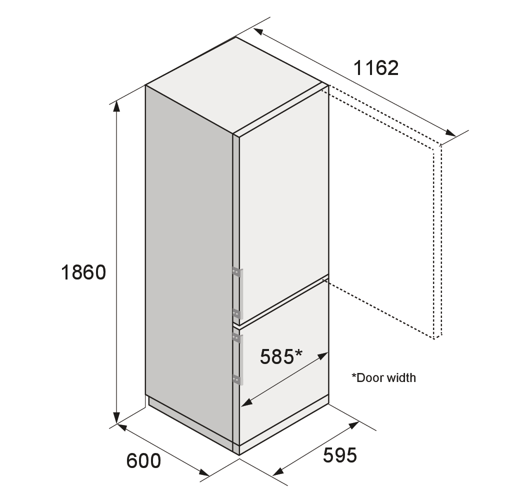 - Wymiary: 1850 mm x 595 mm x 598 mm