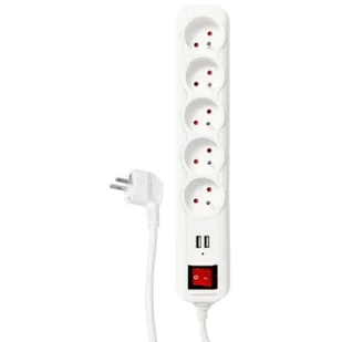 Listwa ochronna zasilająca, posiadająca 5 gniazd z uziemieniem, wyłącznik zasilania oraz 2 x USB (DC 5 V, 2,1 A). Ochrona przed przepięciem i przeciążeniem. Urządzenie o napięciu znamionowym AC 230 V ~ 50 Hz oraz o maksymalnym obciążeniu 10 A (2300 W). Rodzaj przewodu H05VV-F 3G1mm2 o długości 3 m. Listwa koloru białego.