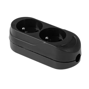 Gniazdo przedłużacza przenośne podwójne z uziemienem 2x2P+Z 16A 250V, rozbieralne, GN-270 CZARNY; T-11046, PLASTROL