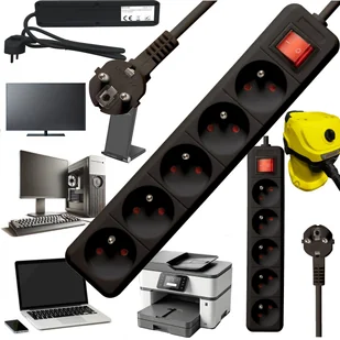 Przedłużacz Listwa Zasilająca Antyprzepięciowa 5 Gniazd 16a 230v 1,5m Czarn