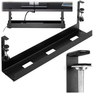 Maskownica organizer kabli półka na kable pod biurko BELEMKolor: czarny mat⭐Szerokość 60 cm ⭐Do blatów od 15 do 50 mm ⭐Bezinwazyjny i szybki montaż ✨ Belem - Utrzymuj swoje miejsce pracy w doskonałym porządku ✨Półka na kable Belem to idealne rozwiązanie do organizacji kabli na biurku. Dzięki niej zyskasz estetyczną i uporządkowaną przestrzeń pracy. Wykonana z wysokiej jakości materiałów, półka Belem wyróżnia się trwałością i elegancją dzięki wykończeniu w matowej czerni. Pasuje do blatów o grubości od 15 do 50 mm, co sprawia, że jest wszechstronna i dopasowuje się do różnych biurek.✅ Regulacja zacisku od 15 do 50 mm - Umożliwia łatwe dopasowanie półki do różnej grubości blatów.✅ Otwory na kable - Zaprojektowane dla łatwej organizacji kabli, utrzymując je poza zasięgiem wzroku i zapewniając estetyczny wygląd.✅ Najwyższa jakość materiałów - Stal malowana proszkowo zapewnia trwałość i elegancję, pasującą do różnych stylów wnętrz.✅ Łatwy montaż - Intuicyjna instalacja z pełnym wyposażeniem montażowym i instrukcją, niewymagająca specjalistycznej wiedzy.✅ Zaciski z podkładkami ochronnymi - Chronią powierzchnię biurka przed zarysowaniami.✅ Idealna do organizacji kabli - Umożliwia efektywną organizację kabli, zapewniając estetykę i funkcjonalność przestrzeni pracy, co zwiększa komfort i efektywność pracy. ✔️ Specyfikacja:Materiał: stal malowana proszkowoKompatybilność blatów: pasuję do blatów o grubości od 15 do 50 mmKolor: czarny matWaga: 1,30 kg ✔️ Wymiary:Wysokość: 20,7 cmSzerokość: 60 cmGłębokość: 10,5 cm ➡️ Korzyści z korzystania z organizera na kable:✅ Maskowanie i zabezpieczanie kabli: Chroni przed dziećmi i zwierzętami, zapobiegając przypadkowemu odłączeniu.✅ Łatwa kontrola nad kablami: Oszczędza miejsce, utrzymując porządek wokół miejsca pracy.✅ Utrzymanie porządku: Eliminuje bałagan pod i za biurkiem.✅ Ochrona przed przypadkowym odłączeniem: Zapobiega wypięciu kabli przez przypadkowy kontakt nogą.✅ Optymalna organizacja: Prowadnica ułatwia organizację i rozmieszczenie kabli.✅ Otwarta konstrukcja: Zapewnia cyrkulację powietrza, poprawiając warunki dla urządzeń. ✅ Zaciski z podkładkami ochronnymiZaciski półki Belem posiadają podkładki ochronne, które zabezpieczają powierzchnię biurka przed zarysowaniami i uszkodzeniami ✅ Otwory na kableOtwory na kable są zaprojektowane tak, aby maksymalnie ułatwić organizację i prowadzenie przewodów, utrzymując je w porządku i poza zasięgiem wzroku zapewniając jednocześnie estetyczny wygląd przestrzeni pracy.UWAGA | Przedstawione kolory należy traktować poglądowo - mogą odbiegać od rzeczywistych, ze względu na różne ustawienia monitorów oraz proces obróbki zdjęć.
