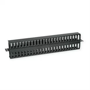 VALUE Organizator kabli + panel frontowy 19", 1U, czarny Organizator kabli z zatrzaskową osłoną Kolor: lakierowany proszkowo na kolor czarny RAL 9005 Specyfikacje: Kolor: Czarny RAL 9005 Standard: 19 " Wysokość:1U