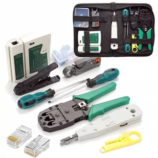 TESTER SIECIOWY ZACISKARKA WCISKACZ RJ45 ETUI LSA ZESTAW NARZĘDZI DO SIECI Praktyczny i kompletny zestaw do konserwacji sieci zapakowany w poręczne etui. W z...