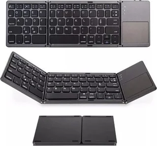 OpisBEZPRZEWODOWA SKŁADANA KLAWIATURA Z TOUCHPADEMKOMPATYBILNA ZE WSZYSTKIMI SMARTFONAMI, KOMPUTERAMI I LAPTOPAMIŁĄCZNOŚĆ BLUETOOTH 5. 0Działa ze wszystkimi urządzeniami obsługującymi technologię Bluetooth. (BLUETOOTH STICK do komputera stacjonarnego NIE JEST WŁĄCZONY - SPRAWDŹ, czy Twój komputer ma BLUETOOTH)WYSOKIEJ JAKOŚCI KLAWISZEWyprofilowane, płaskie i ciche klawisze zapewniają wygodną obsługę. LEKKA I WYTRZYMAŁA KONSTRUKCJAWygodne w dotyku, wytrzymałe klawisze wykonane z wysokiej jakości materiałów. Kompatybilna z większością nowoczesnych urządzeńWindows, Android i iOS są kompatybilne z naszą klawiaturą.