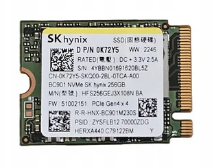Dysk Ssd M.2 Sk Hynix 0K72Y5 2230 PCIe x4 Gen4 NVMe 256GB