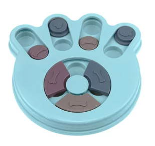 Manualna zabawka edukacyjna dla psa. Łamigłówka logiczna rozwijająca spryt zwierzęcia. Koło posiada szczeliny w których można umieścić ulubiony przysmak. Materiał: tworzywo sztuczne Kształt: psia łapa Wysokość: