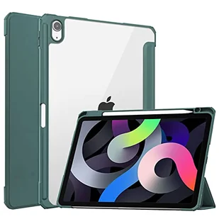 Etui do iPada Pro 12,9" 2021/2020 (5/4. generacji) z uchwytem na długopis, Tri-Fold Clear Back Cover z inteligentną osłoną do spania/budzenia (ciemnozielone)