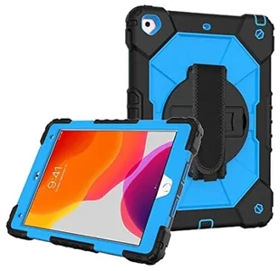 Etui ochronne do iPada 9/8 / 7 generacji 2021/2020 / 2019 10,2 cala, etui ochronne, odporne na uderzenia, wytrzymałe, z uchwytem na długopis, obracany o 360°, pasek na rękę, pasek na ramię