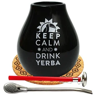Mate kubek do herbaty Black 350 ml | ceramiczny kubek do herbaty Mate Luka Negro | Bombilla stalowa słomka do picia Liza 19 cm | Analogowy termometr do herbaty w etui "długopis" o długości 15 cm |