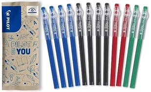 PILOT - 12 długopisów FriXion Ball Stick - wymazywalny tusz żelowy - 4 niebieskie, 4 czarne, 2 czerwone, 2 zielone - Średni punkt Ekonomiczny FriXion - Do umieszczania etui szkolnego - artykuły