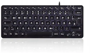 Perixx PERIBOARD-332 przewodowa klawiatura mini USB z podświetleniem, smukła konstrukcja z dużymi klawiszami czcionek, płaskie przyciski z białą diodą LED, niemiecki układ QWERTZ