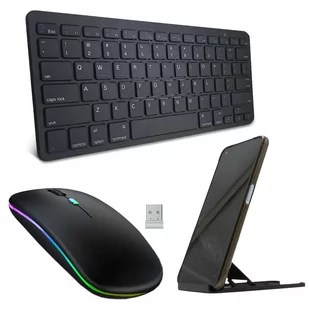Alogy Uniwersalna Klawiatura Bezprzewodowa Bluetooth Czarna + Myszka BT Cicha + Podstawka regulowana
