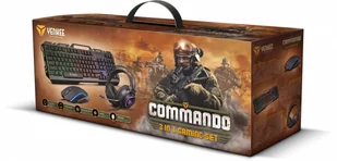 SET COMMANDO Unikalna, podświetlana metalowa klawiatura z funkcją "anti-ghosting" i klawiszami multimedialnymi Metalowy korpus z przełącznikami membranowymi Podświetlenie RNBW z opcją wyłączenie Funkacja "Anty-ghosting" pozwalająca na jednoczesne wciśnięcie siedmiu klawiszy. 12 klawiszy do sterowania funkcji multimedialnych Komfortowy i niskoprofilowy układ klawiszy Ergonomiczna, podświetlana 7-przyciskowa mysz 7 przycisków z trwałymi przełącznikami do gier 7 jednokolorowych trybów podświetlenia LED wraz z efektem "oddychania". Ergonomiczny kształt z oparciem na kciuk Antypoślizgowa gumowana powierzchnia zapewniająca bardzo dobrą przyczepność Nominalna moc na wejściu: DC5V 100mA Rozdzielczość: 800/1200/2400/3200 DPI Niezwykle wygodne, podświetlane słuchawki z mikrofonem i regulacją głośności Precyzyjne przetworniki 50 mm pozwalają na uzyskanie doskonałego dźwięku Uniwersalny rozmiar i samoregulujący się elastyczny pałąk Wygodne nauszniki doskonałe do długich sesji.