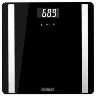Precyzyjna waga do analizy ciała z wyświetlaczem LCD BacklightCyfrowa analizator składu ciała Monzana® pozwala łatwo sprawdzić swoją wagę, zawartość tkanki tłuszczowej, wskaźnik BMI i wiele więcej. Waga tkanki tłuszczowej wykonuje analizę oporu bioelektrycznego (BIA) podczas ważenia i dostarcza następujące wartości: * Masa ciała* Wskaźnik masy ciała* % tkanki tłuszczowej* % wody w organizmie* Procent masy mięśniowej w %* Procent masy kostnej w %* dzienne zapotrzebowanie na kalorie* Analiza wyników w postaci wykresu słupkowegoWaga umożliwia przechowywanie do 10 osób. Na podstawie osobistego profilu można również wyświetlić wartości, takie jak “przyrost / utrata masy ciała”. W tym celu porównuje się nowe wartości z poprzednimi.